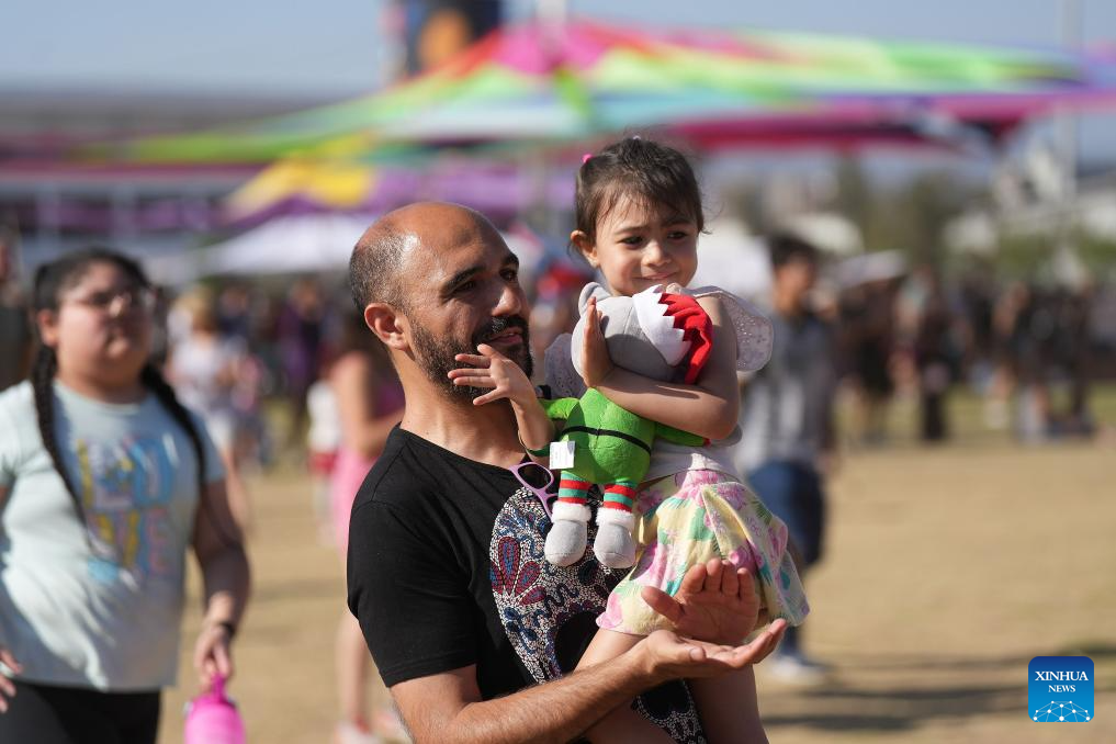 SANTIAGO, 16 diciembre, 2024 (Xinhua) -- Imagen cedida por la Presidencia de Chile el 15 de diciembre de 2024 de un hombre cargando a una niña mientras asisten al Festival Navideño 2024, en el Parque Estadio Nacional, en Santiago, capital de Chile. (Xinhua/Presidencia de Chile)