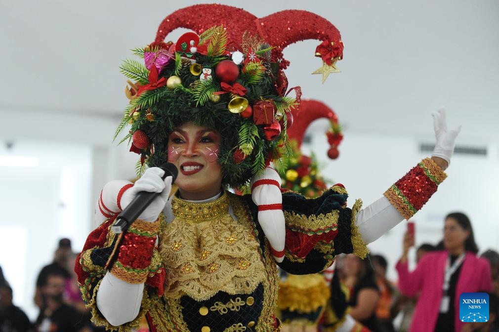 BRASILIA, 16 diciembre, 2024 (Xinhua) -- Una artista de un grupo teatral realiza una presentación para niños durante las celebraciones navideñas en el Hospital Infantil de Brasilia, en Brasilia, Brasil, el 16 de diciembre de 2024. (Xinhua/Lucio Tavora)