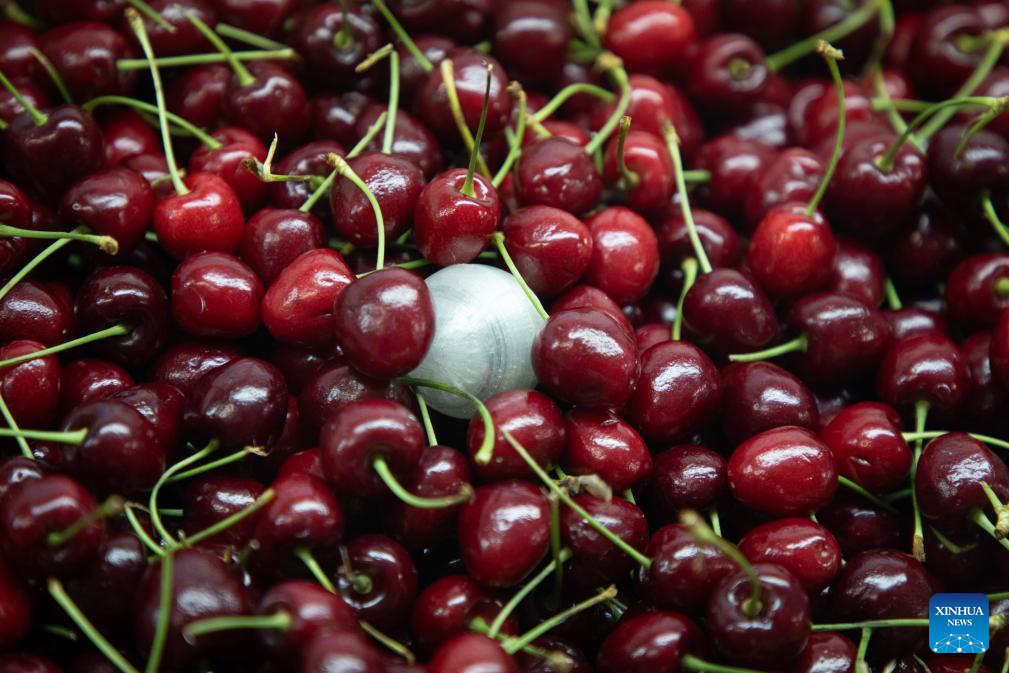 HURLINGHAM, 14 diciembre, 2024 (Xinhua) -- Imagen del 10 de diciembre de 2024 de un cajón de cerezas con una cápsula contenedora de una "cereza electrónica" en el Laboratorio de Agroelectrónica del Instituto de Ingeniería Rural del Instituto Nacional de Tecnología Agropecuaria (INTA) sede Castelar, en la localidad de Hurlingham, Argentina. Un grupo de especialistas en agrotecnología desarrolló en Argentina una innovadora "cereza electrónica", un dispositivo equipado con sensores que detectan movimientos bruscos y golpes que se integra en los procesos de empaque y transporte de esta fruta y que tiene como función principal el proporcionar datos clave para reducir los daños mecánicos durante el manejo de las cerezas y, de este modo, mejorar su valor comercial en el mercado de exportación. (Xinhua/Martín Zabala)