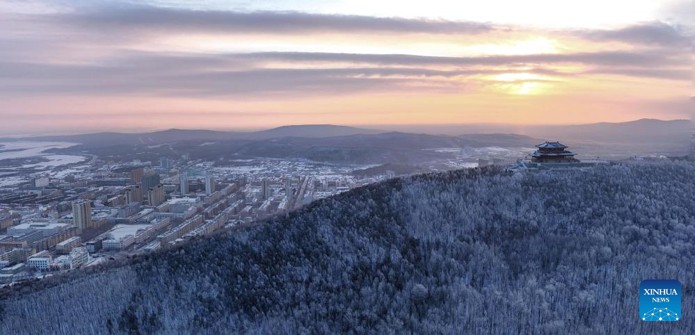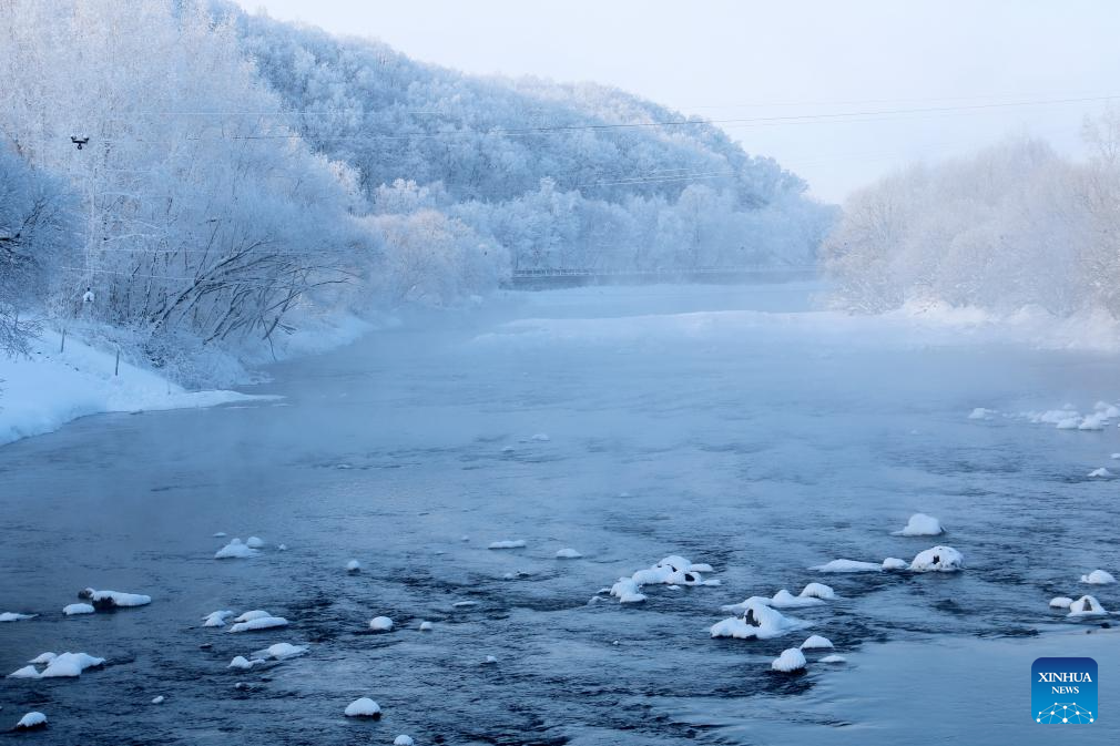 HARBIN, 5 enero, 2025 (Xinhua) -- Imagen del 4 de enero de 2025 del paisaje de escarcha en un punto escénico, en Wudalianchi, en la provincia de Heilongjiang, en el noreste de China. (Xinhua/Lu Wenxiang)