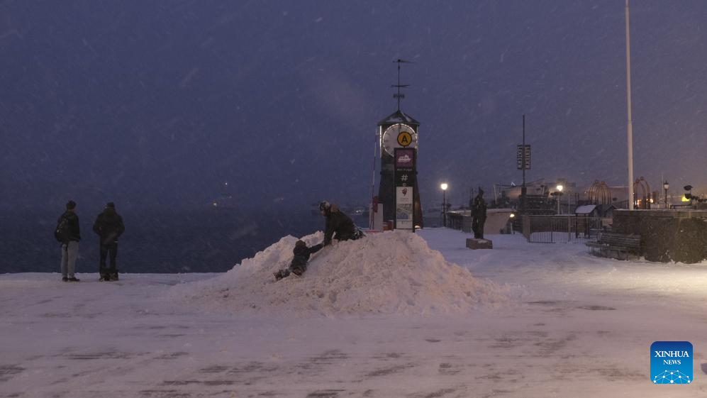 OSLO, 7 enero, 2025 (Xinhua) -- Imagen del 6 de enero de 2025 de personas vistas en una calle en la nieve, en Oslo, capital de Noruega. Europa está lidiando con una poderosa ola de clima invernal extremo, incluyendo fuertes nevadas, aguanieve y tormentas, que han alterado el transporte y la infraestructura en todo el continente, dejando a los viajeros varados y a las comunidades locales luchando por controlar el caos. (Xinhua/Zhang Yuliang)
