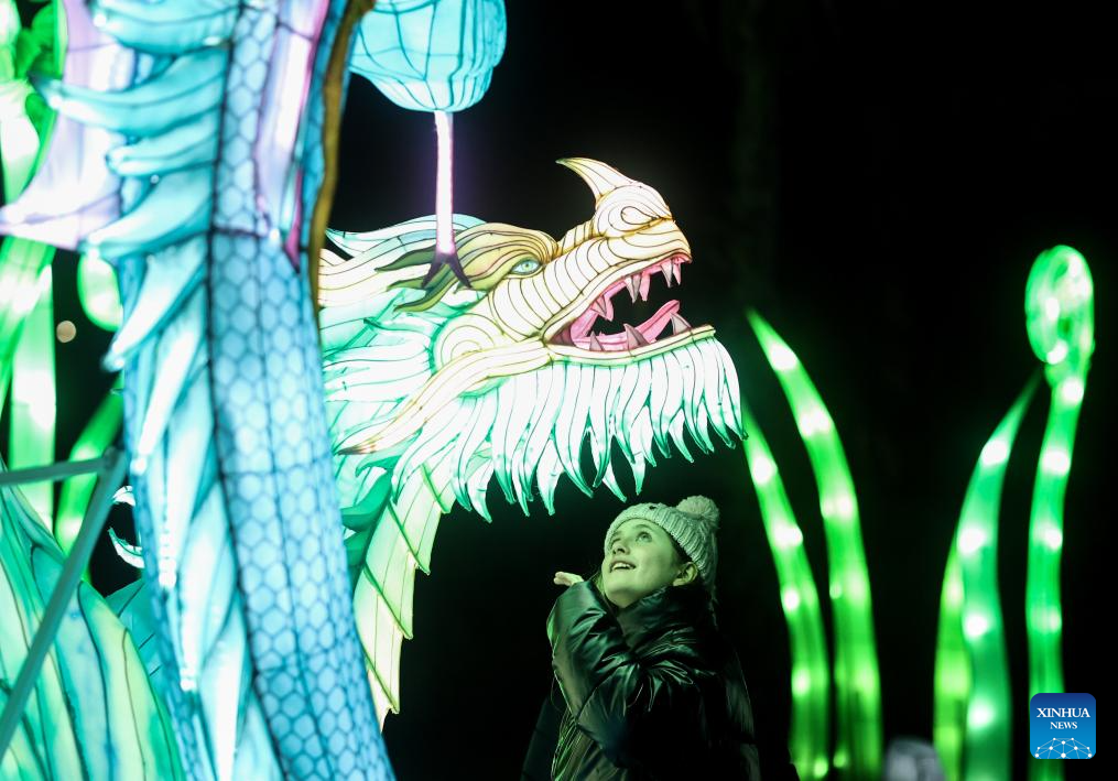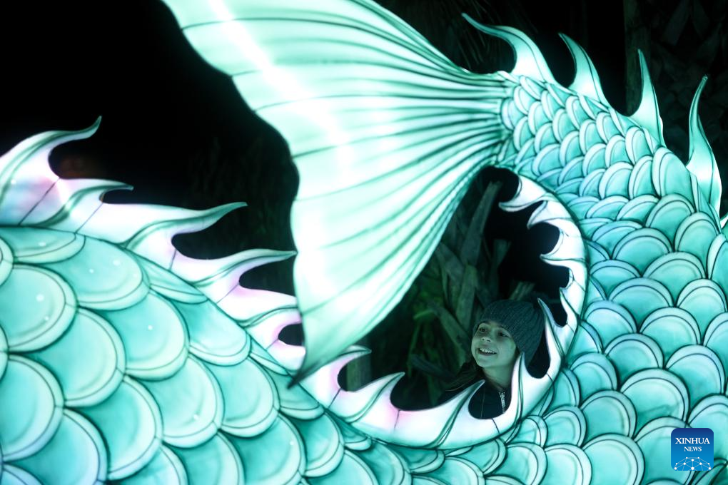 ROMA, 7 enero, 2025 (Xinhua) -- Imagen del 6 de enero de 2025 de una niña visitando una exposición de linternas chinas en un parque, en Roma, Italia. (Xinhua/Li Jing)