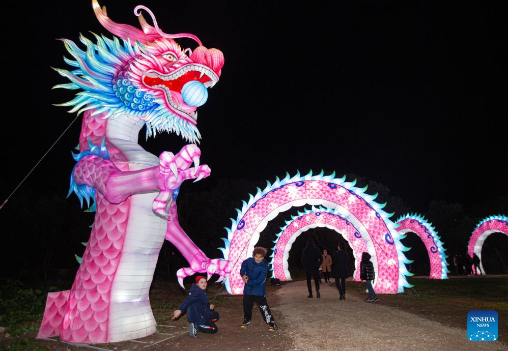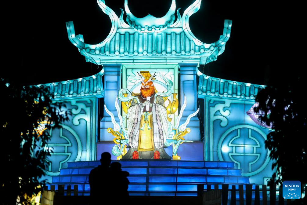 ROMA, 7 enero, 2025 (Xinhua) -- Imagen del 6 de enero de 2025 de personas visitando una exposición de linternas chinas en un parque, en Roma, Italia. (Xinhua/Li Jing)