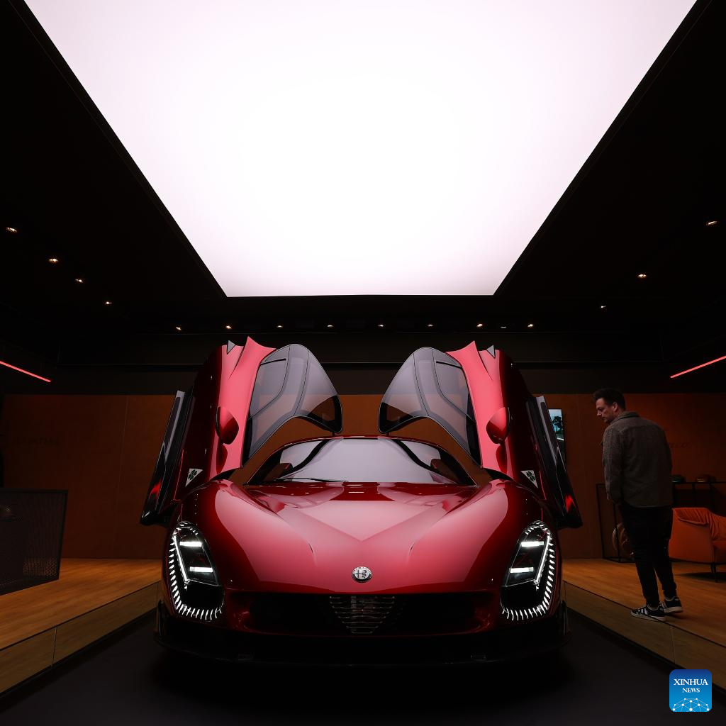BRUSELAS, 11 enero, 2025 (Xinhua) -- Imagen del 10 de enero de 2025 de un hombre observando un automóvil Alfa Romeo en el Salón del Automóvil de Bruselas, en Bruselas, Bélgica. La 101 edición del Salón del Automóvil de Bruselas comenzó el viernes, ofreciendo a los entusiastas de los automóviles una oportunidad para explorar las últimas innovaciones y tendencias automotrices. (Xinhua/Zhao Dingzhe)