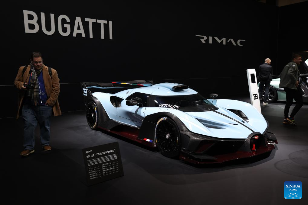 BRUSELAS, 11 enero, 2025 (Xinhua) -- Imagen del 10 de enero de 2025 de un automóvil Bugatti visto en el Salón del Automóvil de Bruselas, en Bruselas, Bélgica. La 101 edición del Salón del Automóvil de Bruselas comenzó el viernes, ofreciendo a los entusiastas de los automóviles una oportunidad para explorar las últimas innovaciones y tendencias automotrices. (Xinhua/Zhao Dingzhe)