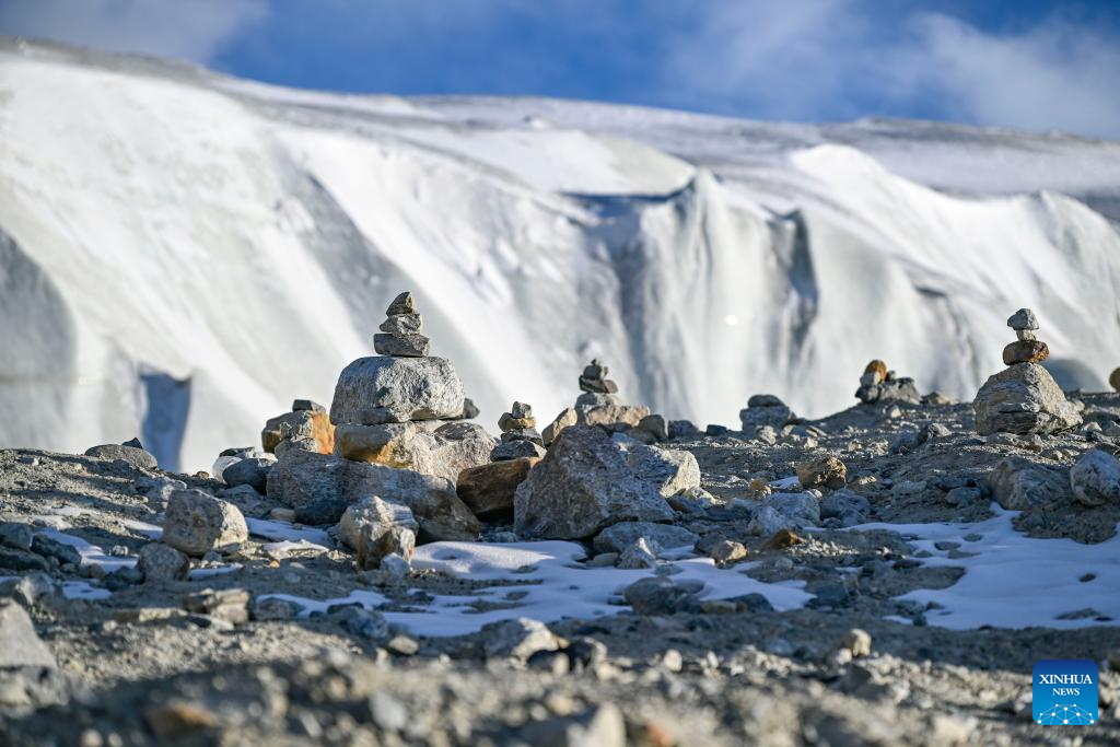 TAXKORGAN, 13 enero, 2025 (Xinhua) -- Imagen del 12 de enero de 2025 de montones de piedras en un intento por obtener bendiciones vistos en el parque glaciar Muztagata, en el distrito autónomo tayiko de Taxkorgan, en la región autónoma uygur de Xinjiang, en el noroeste de China. (Xinhua/Chen Shuo)