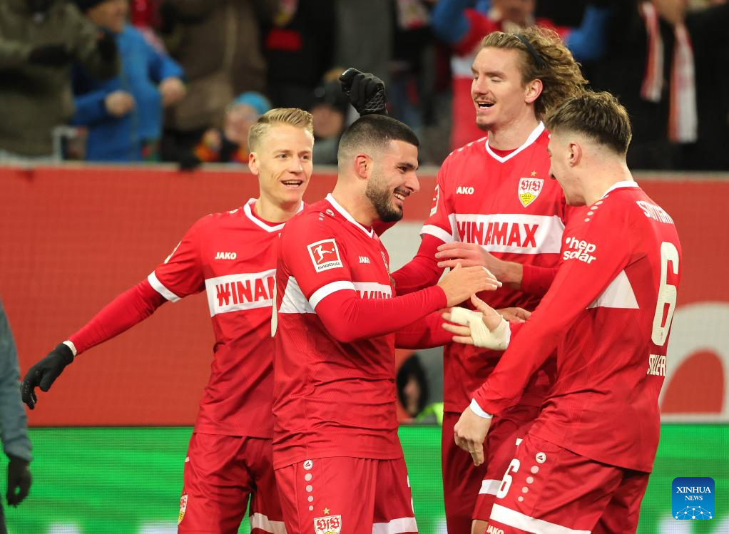 AUGSBURGO, 13 enero, 2025 (Xinhua) -- Imagen del 12 de enero de 2025 de Deniz Undav (2-i), de VfB Stuttgart, festejando su anotación con sus compañeros durante el partido de fútbol de la primera división alemana de la Bundesliga entre FC Augsburgo y VfB Stuttgart, en Augsburgo, Alemania. (Xinhua/Philippe Ruiz)