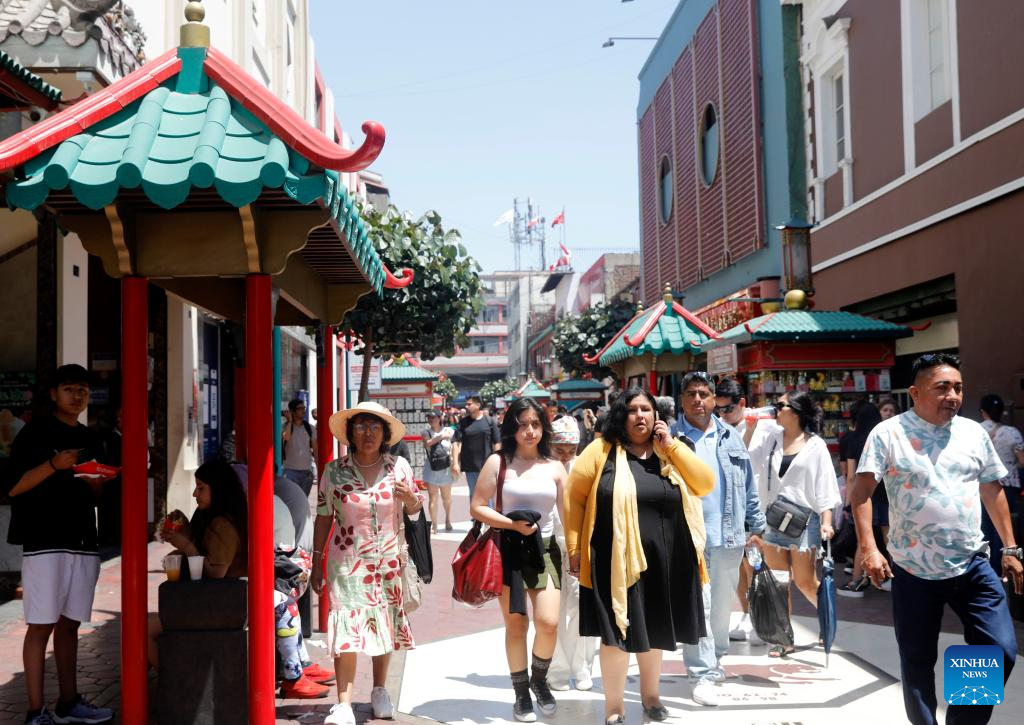 LIMA, 14 enero, 2025 (Xinhua) -- Personas pasean previo a los festejos por el Año Nuevo chino de la Serpiente, en el Barrio Chino, en el centro de Lima, Perú, el 14 de enero de 2025. (Xinhua/Mariana Bazo)