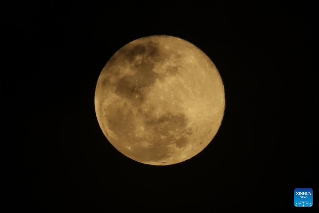SAN SALVADOR, 14 enero, 2025 (Xinhua) -- Imagen del 13 de enero de 2025 de la primera luna llena de 2025, conocida como Luna de Lobo, en el departamento de San Salvador, El Salvador. (Xinhua/Alexander Peña)