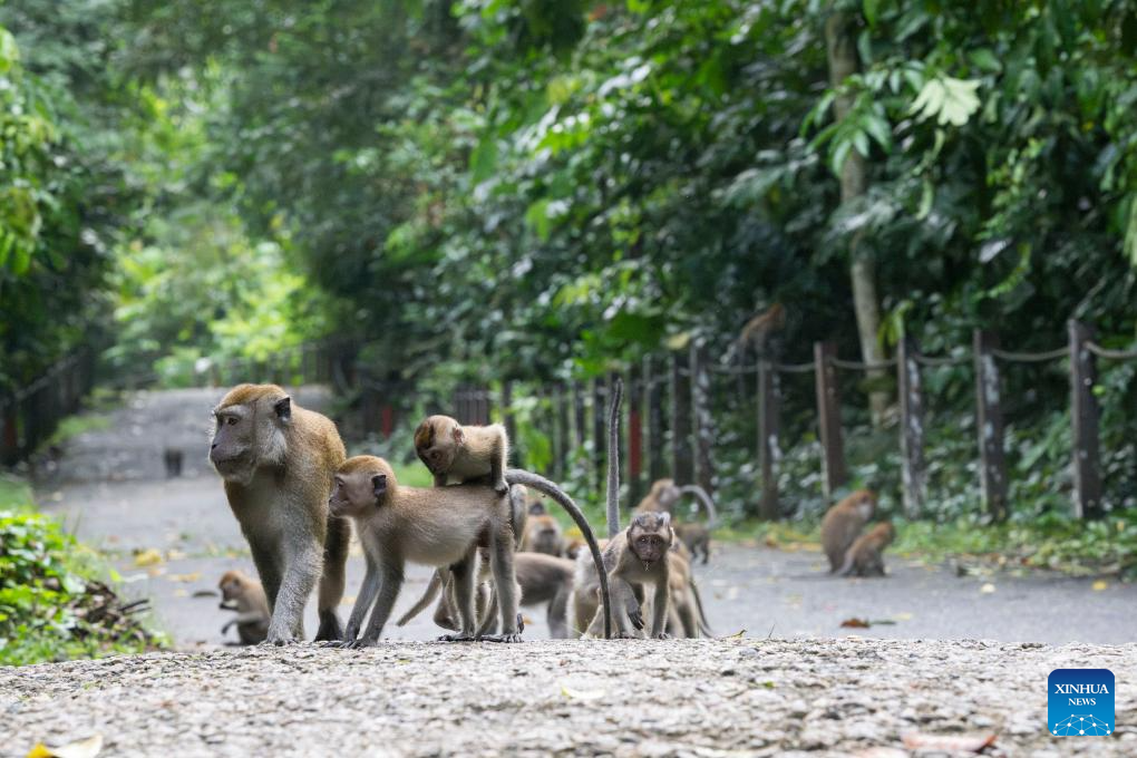 SINGAPUR, 3 marzo, 2025 (Xinhua) -- Imagen del 20 de enero de 2025 de un grupo de macacos de cola larga vistos en la Reserva Natural de la Cuenca Central de Singapur. El Día Mundial de la Vida Silvestre se celebra anualmente el 3 de marzo. Singapur tiene muchas reservas naturales, brindando hábitats a animales salvajes y plantas. (Xinhua/Then Chih Wey)