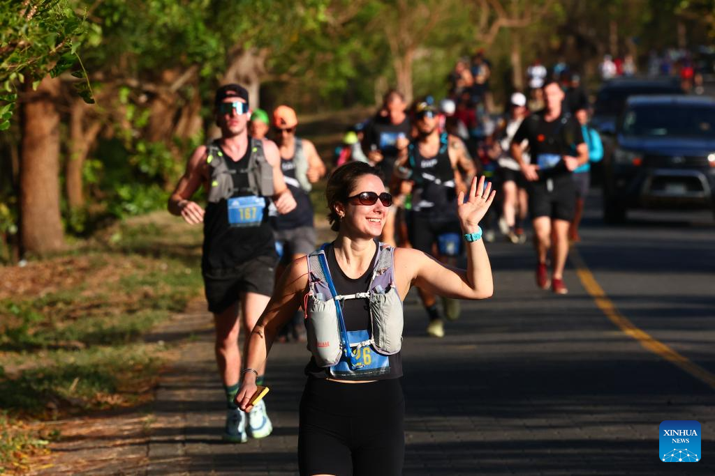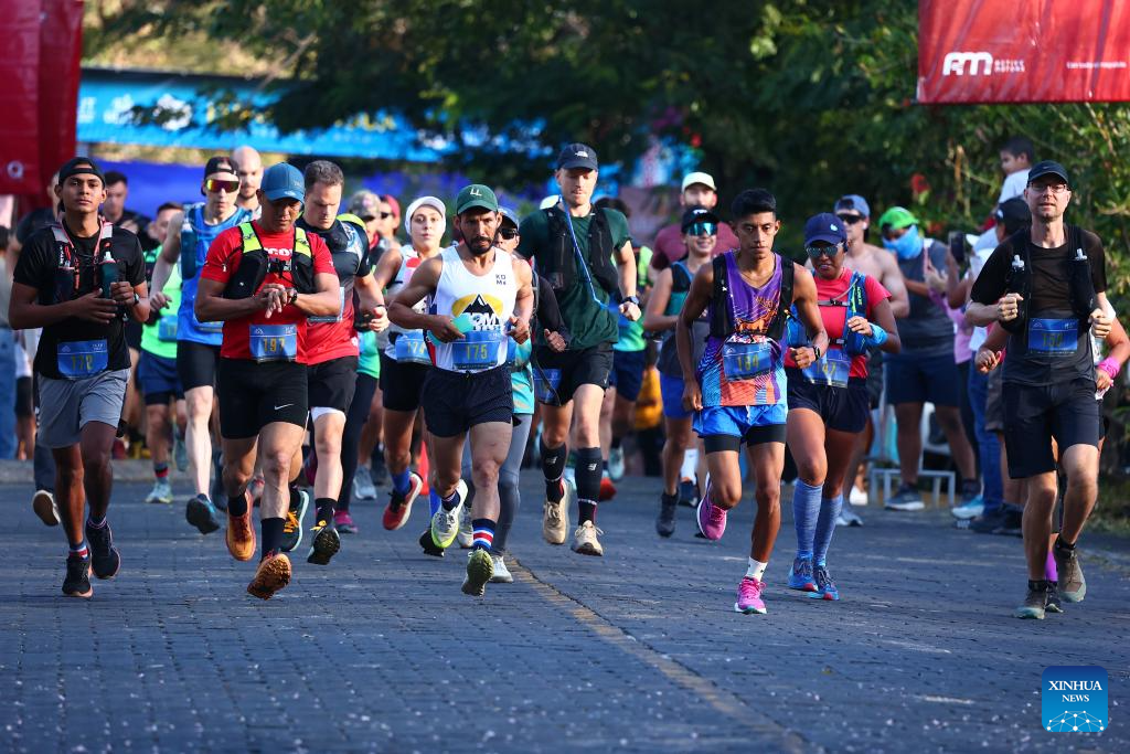RIVAS, 4 marzo, 2025 (Xinhua) -- Imagen cedida por el Consejo de Comunicación y Ciudadanía de la República de Nicaragua del 2 de marzo de 2025 de personas participando en el Ultra Maratón Fuego y Agua 2025, en Rivas, Nicaragua. El Ultra Maratón Fuego y Agua 2025 se desarrolló el fin de semana en la isla de Ometepe, en el Lago de Nicaragua, en la zona sur del país centroamericano, un evento de resistencia extrema impulsado por la Organización Fuego y Agua, así como el Instituto Nicaragüense de Turismo. (Xinhua/Consejo de Comunicación y Ciudadanía de Nicaragua)