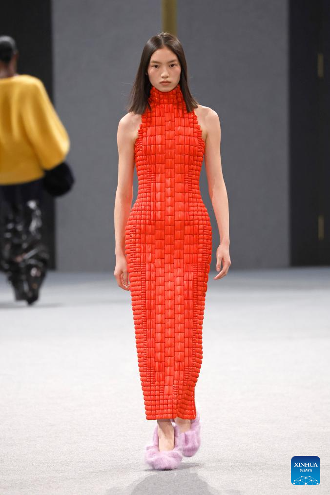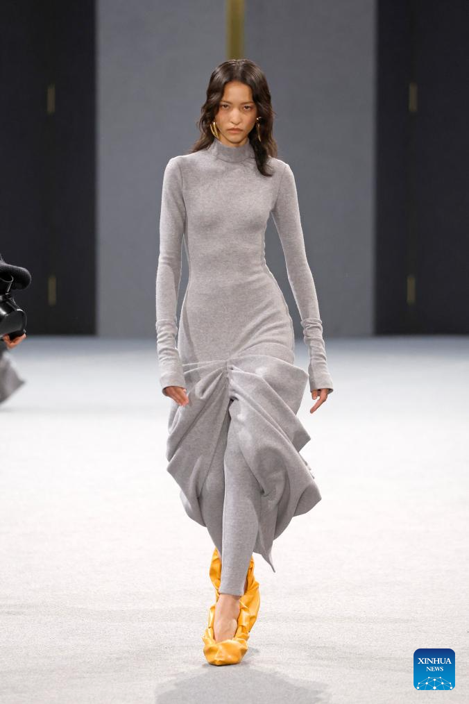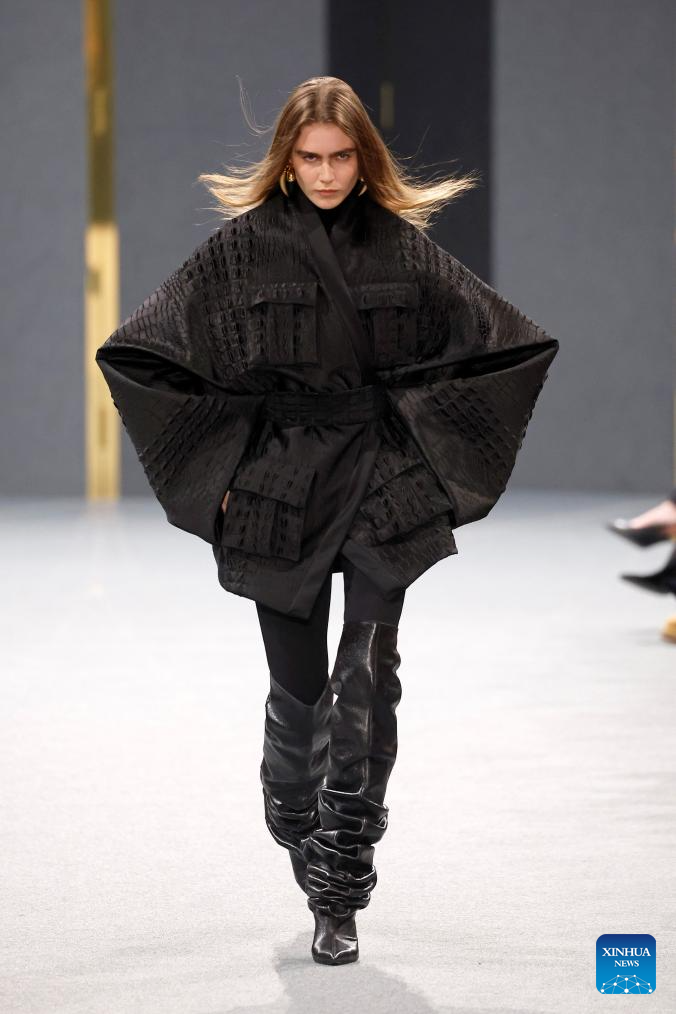 PARÍS, 6 marzo, 2025 (Xinhua) -- Imagen del 5 de marzo de 2025 de una modelo presentando una creación de las colecciones listas para usar Otoño/Invierno 2025-2026 de Balmain durante la Semana de la Moda de París, en París, Francia. (Xinhua/MeetEurope)