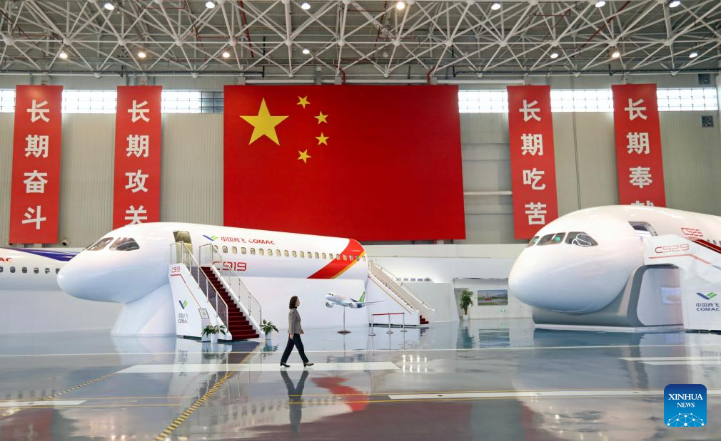 SHANGHAI, 6 marzo, 2025 (Xinhua) -- Imagen del 5 de marzo de 2025 de Zhao Chunling caminando frente a una maqueta de los aviones C919 y C929 en un instituto de investigación de la Corporación de Aviones Comerciales de China (COMAC, por sus siglas en inglés), en Shanghai, en el este de China. Zhao Chunling, diseñadora en jefe del avión de fuselaje ancho C929 de fabricación nacional de China en la COMAC, es la primera diseñadora en jefe mujer de la industria de la aviación de China en dirigir un importante programa aeronáutico nacional. Zhao comenzó su carrera en la industria de la aviación una vez después de graduarse. En 2009, se unió a la COMAC y desempeñó un papel clave en el diseño, desarrollo y prueba de los aviones C909 y C919. En 2023, fue designada diseñadora en jefe del avión C929, liderando a su equipo para ampliar los límites del desarrollo de aviones comerciales de China. "Los puestos, los roles y los desafíos cambiaron con el tiempo, pero mi pasión por la aviación y mi determinación intrépida nunca flaquearon", dijo Zhao. (Xinhua/Liu Ying)