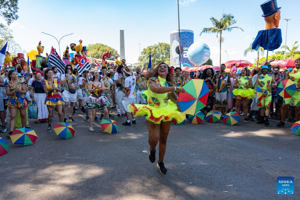 SAO PAULO, 6 marzo, 2025 (Xinhua) -- Imagen del 4 de marzo de 2025 de juerguistas asistiendo al desfile Galo da Madrugada (Gallo de Madrugada) durante el Carnaval de Sao Paulo 2025, en Sao Paulo, Brasil. (Xinhua/Paulo Lopes)