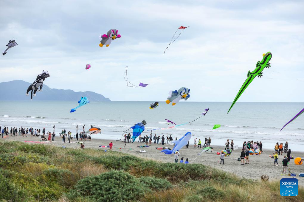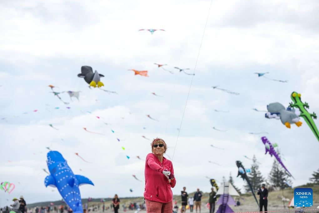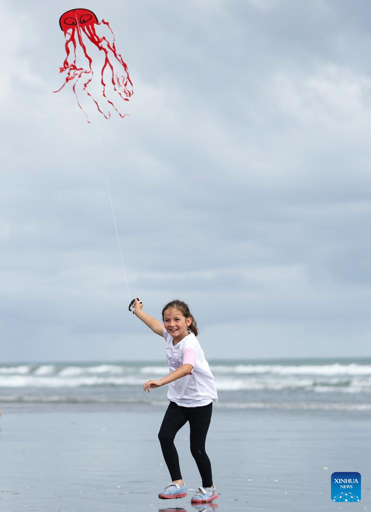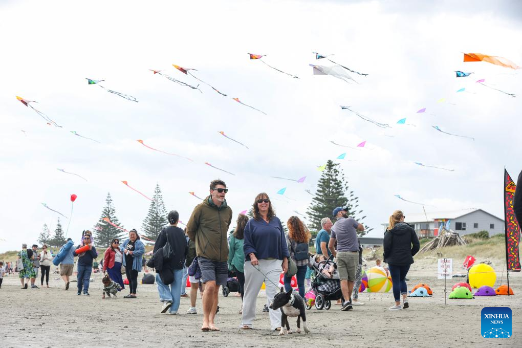 OTAKI, 8 marzo, 2025 (Xinhua) -- Personas salen a pasear, en la playa Otaki, Nueva Zelanda, el 8 de marzo de 2025. El Festival de Cometas de Otaki se llevó a cabo aquí el sábado. (Xinhua/Long Lei)