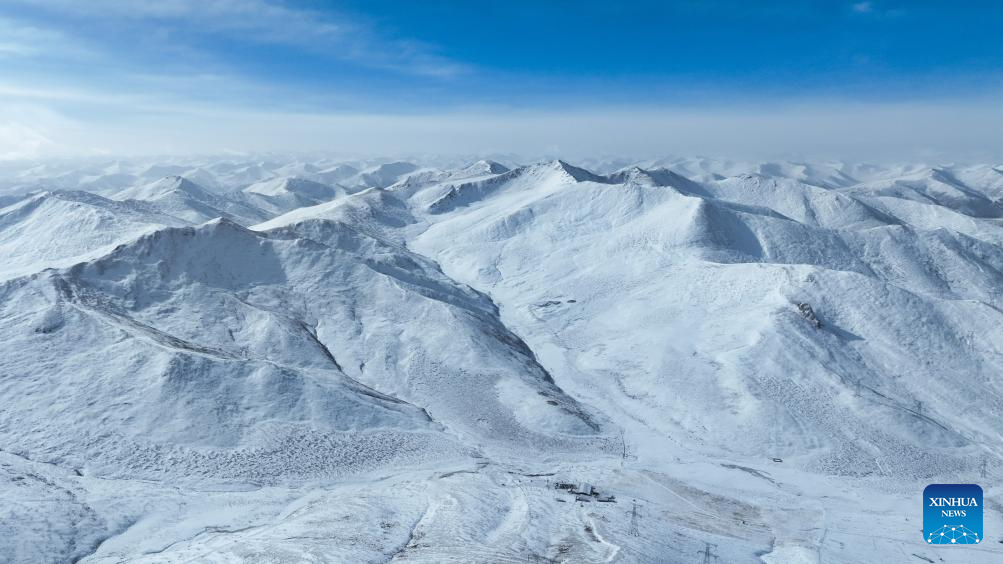 GOLOG, 9 marzo, 2025 (Xinhua) -- Vista aérea tomada con un dron el 8 de marzo de 2025 del paisaje nevado, en el distrito de Gande, de la prefectura autónoma tibetana de Golog, en la provincia de Qinghai, en el noroeste de China. (Xinhua/Qi Zhiyue)