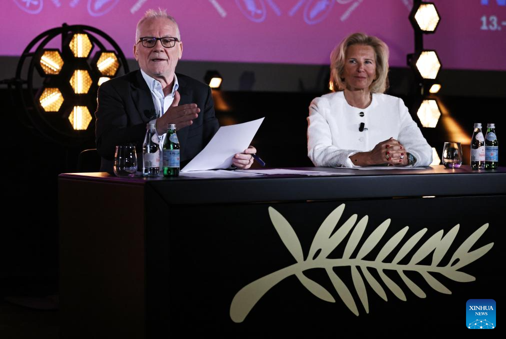 PARIS, 10 abril, 2025 (Xinhua) -- La presidenta de Festival de Cine de Cannes, Iris Knobloch (d), y el delegado general, Thierry Fremaux, asisten a una conferencia de prensa, en París, Francia, el 10 de abril de 2025. El Comité del Festival de Cine de Cannes sostuvo una conferencia de prensa el jueves para anunciar la selección oficial de este año. (Xinhua/Gao Jing)