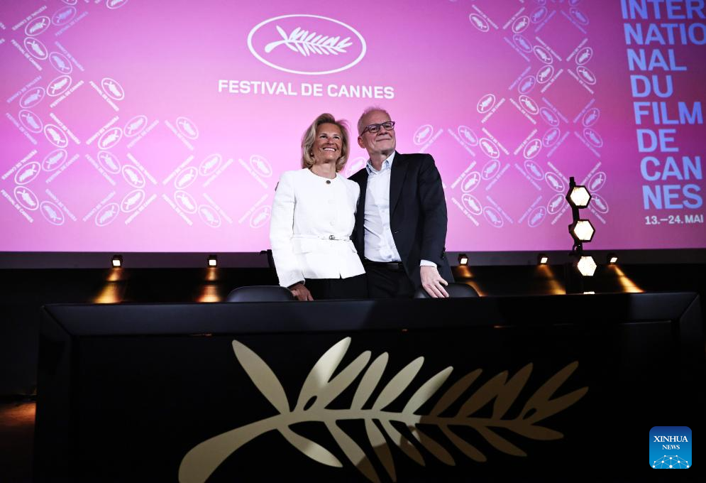 PARIS, 10 abril, 2025 (Xinhua) -- La presidenta de Festival de Cine de Cannes, Iris Knobloch (d), y el delegado general, Thierry Fremaux, posan para una fotografía luego de una conferencia de prensa, en París, Francia, el 10 de abril de 2025. El Comité del Festival de Cine de Cannes sostuvo una conferencia de prensa el jueves para anunciar la selección oficial de este año. (Xinhua/Gao Jing)
