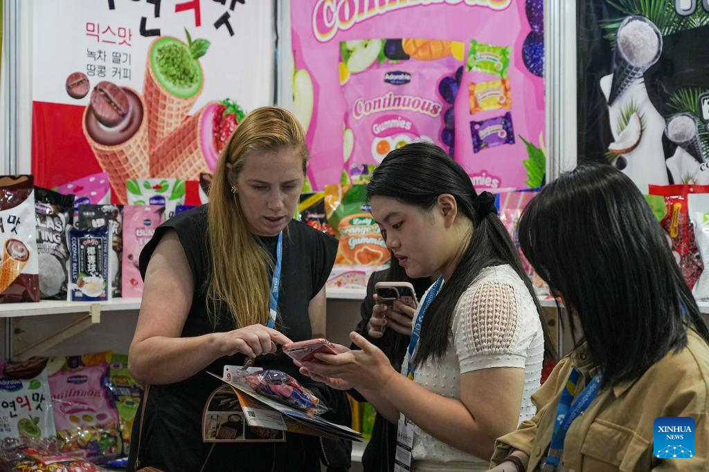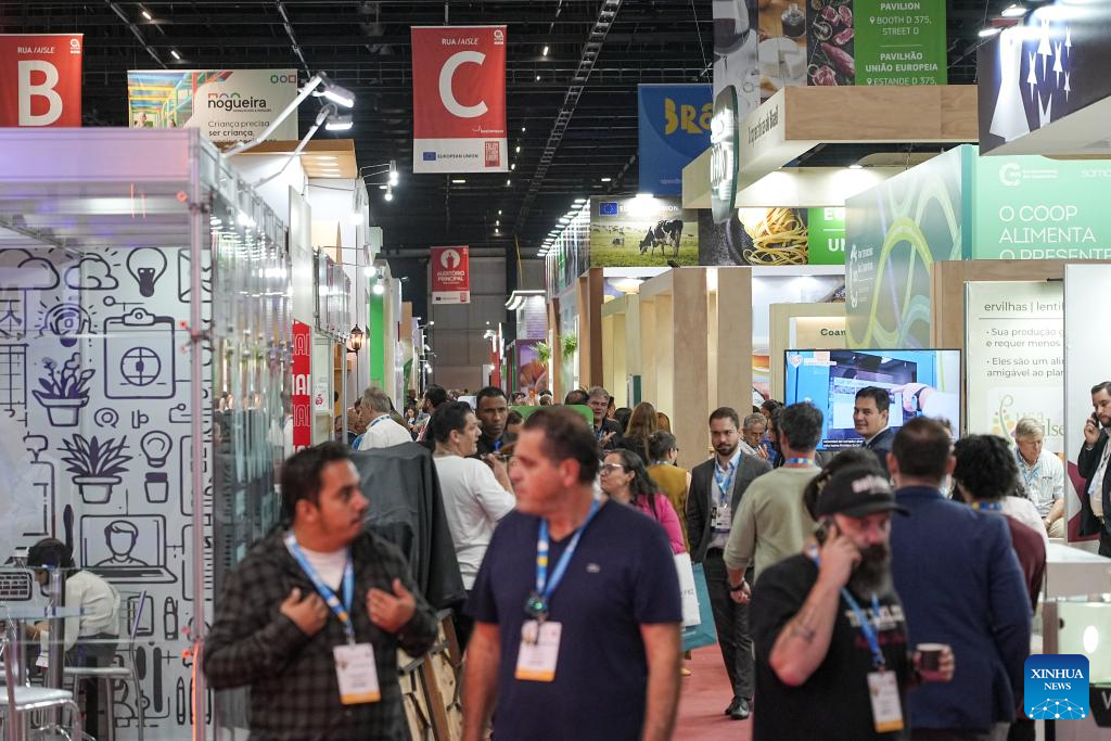 SAO PAULO, 10 abril, 2025 (Xinhua) -- Imagen del 9 de abril de 2025 de personas recorriendo los estands en la feria internacional de alimentos y bebidas "Anuga Select Brasil", en Sao Paulo, Brasil. (Xinhua/Paulo Lopes)