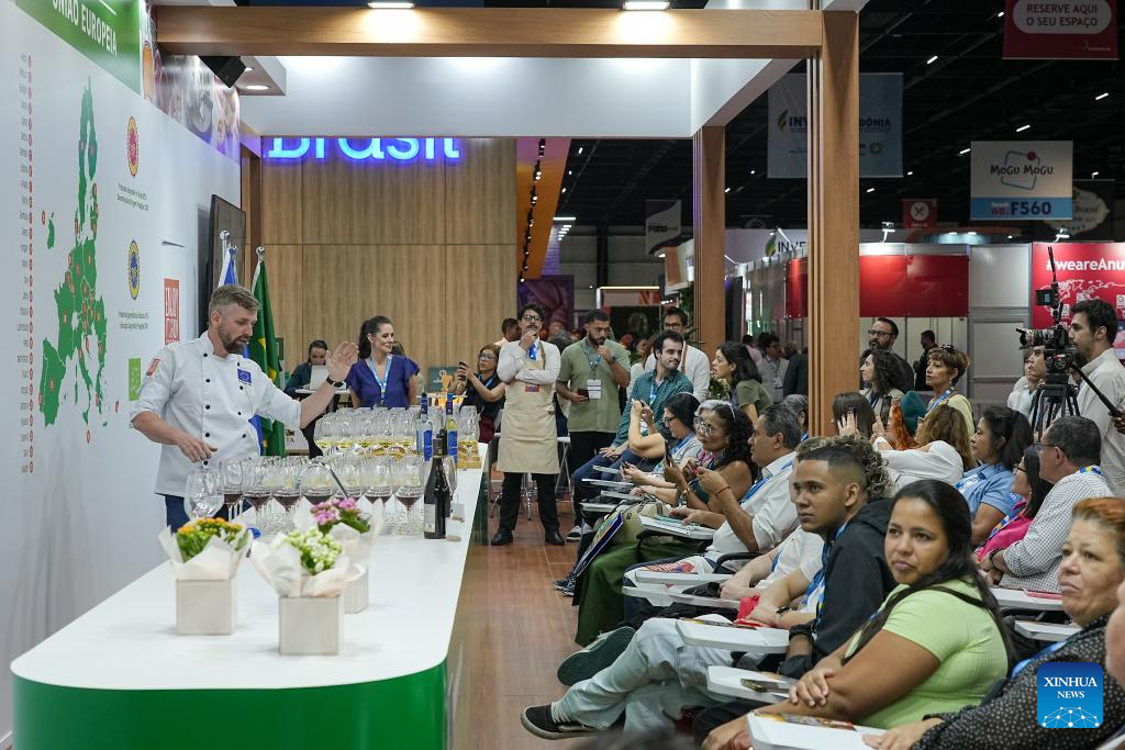 SAO PAULO, 10 abril, 2025 (Xinhua) -- Imagen del 9 de abril de 2025 de visitantes observando una presentación en la feria internacional de alimentos y bebidas "Anuga Select Brasil", en Sao Paulo, Brasil. (Xinhua/Paulo Lopes)