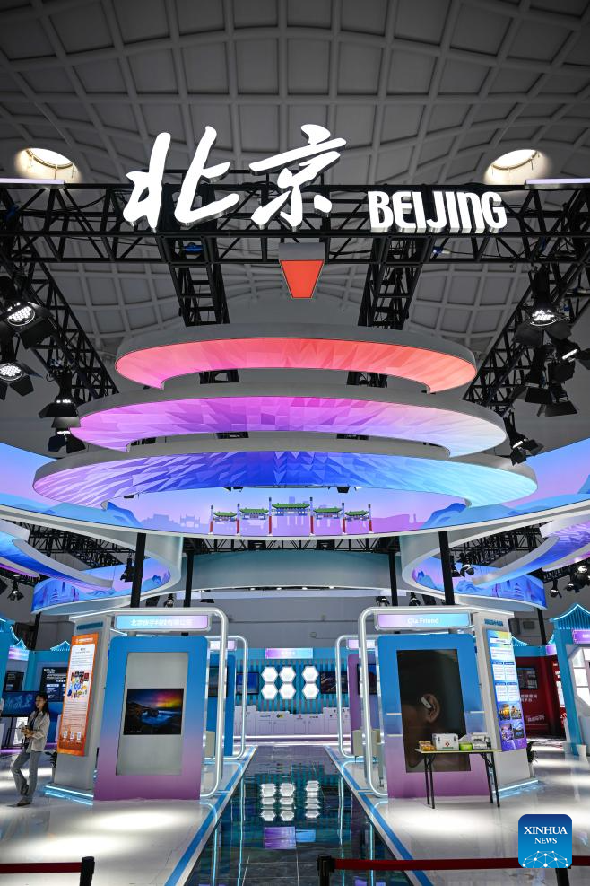 HAIKOU, 11 abril, 2025 (Xinhua) -- Imagen del 10 de abril de 2025 del área de exposición de Beijing, capital de China, en el Centro Internacional de Convenciones y Exposiciones de Hainan, sede principal de la próxima V Exposición Internacional de Productos de Consumo de China (CICPE, por sus siglas en inglés), en Haikou, capital de la provincia de Hainan, en el sur de China. La V CICPE, que presenta ocho salas de exposición, está agendada del 13 al 18 de abril aquí. La exposición, una plataforma clave para el comercio mundial y tendencias de consumo, ha atraído la participación de más de 4,100 marcas de 71 países y regiones. (Xinhua/Pu Xiaoxu)