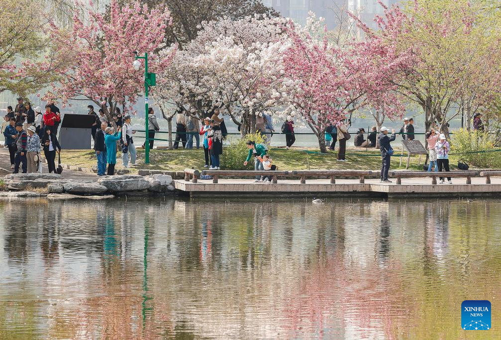 BEIJING, 11 abril, 2025 (Xinhua) -- Imagen del 10 de abril de 2025 de visitantes tomando fotografías de los cerezos en flor en el Parque Yuyuantan, en Beijing, capital de China. En la primavera de 2025, los entusiastas de la fotografía se lanzaron a capturar paisajes primaverales con sus teléfonos inteligentes y cámaras, creando un fenómeno primaveral distintivo. La participación pública en la fotografía ha experimentado un crecimiento notable en los últimos años, impulsada por los avances en la fotografía con teléfonos inteligentes y el uso generalizado de las redes sociales. Esta "locura fotográfica" ha estimulado simultáneamente el turismo y la economía primaveral. (Xinhua/Zhang Yuwei)
