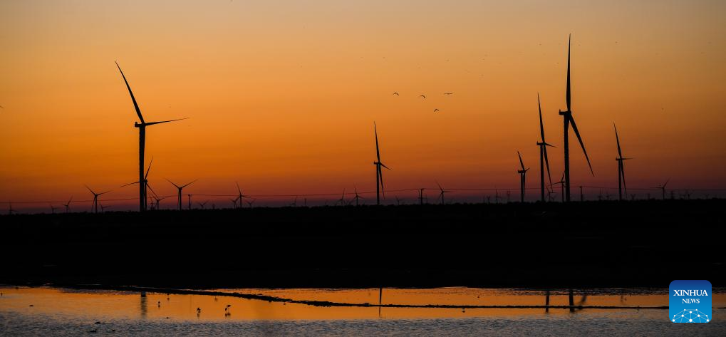 YANCHENG, 11 abril, 2025 (Xinhua) -- Vista aérea del 31 de agosto de 2023 del paisaje del atardecer en el humedal de Tiaozini, en Dongtai de Yancheng, en la provincia de Jiangsu, en el este de China. Yancheng, situada en la parte central del litoral de la provincia de Jiangsu, debe su nombre al significado de "ciudad rodeada de campos de sal". En los últimos años, Yancheng se ha esforzado por dar forma a una ciudad verde y habitable mediante diversos esfuerzos. (Xinhua/Ji Chunpeng)