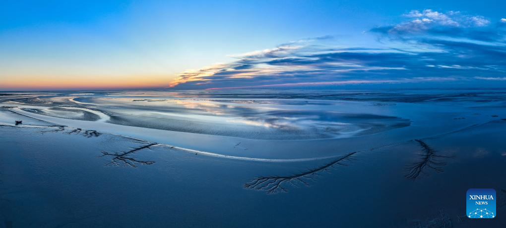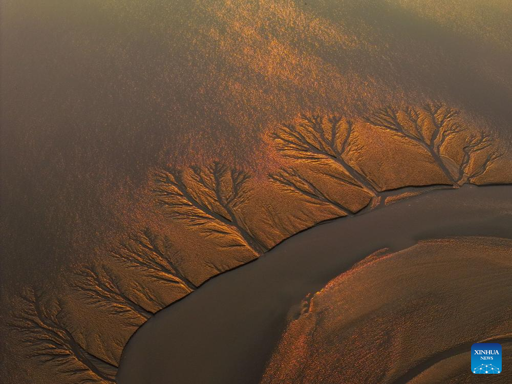 YANCHENG, 11 abril, 2025 (Xinhua) -- Vista aérea tomada con un dron el 29 de octubre de 2024 de la llanura de marea en el humedal de Tiaozini, en Dongtai de Yancheng, en la provincia de Jiangsu, en el este de China. Yancheng, situada en la parte central del litoral de la provincia de Jiangsu, debe su nombre al significado de "ciudad rodeada de campos de sal". En los últimos años, Yancheng se ha esforzado por dar forma a una ciudad verde y habitable mediante diversos esfuerzos. (Xinhua/Li Bo)