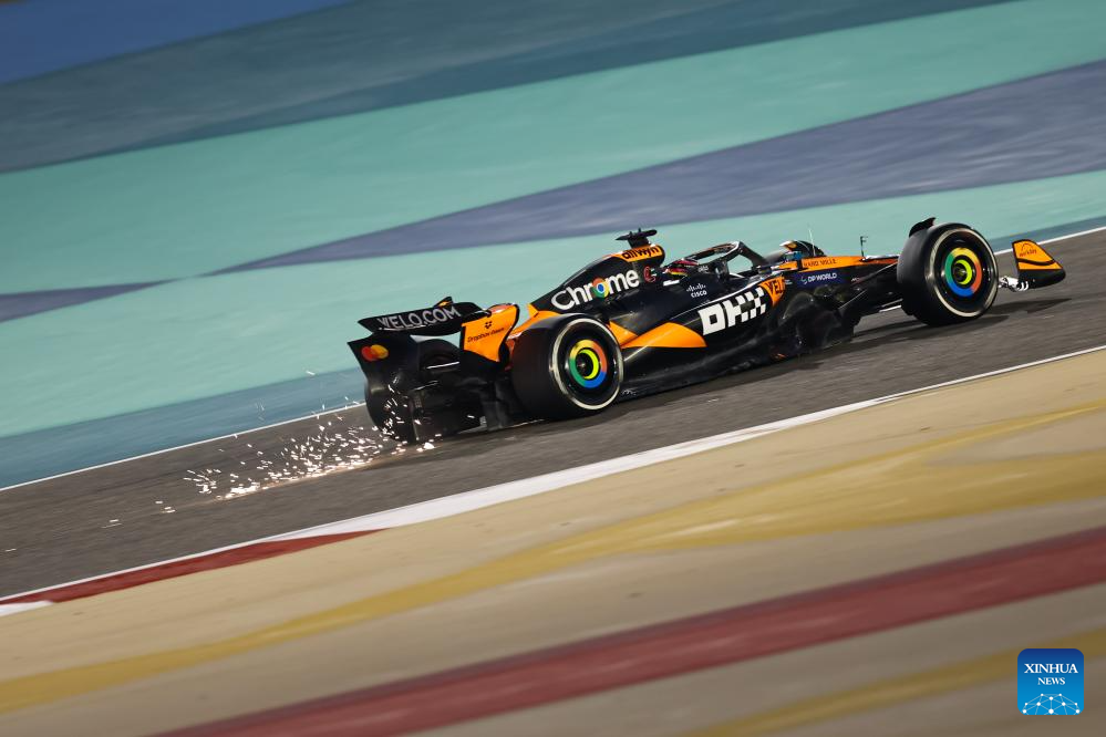 SAKHIR, 12 abril, 2025 (Xinhua) -- Imagen del 11 de abril de 2025 del piloto australiano de la escudería McLaren, Oscar Piastri, conduciendo durante la segunda sesión de prácticas libres del Gran Premio de Bahréin de Fórmula Uno en el Circuito Internacional de Bahréin, en Sakhir, Bahréin. (Xinhua/Qian Jun)