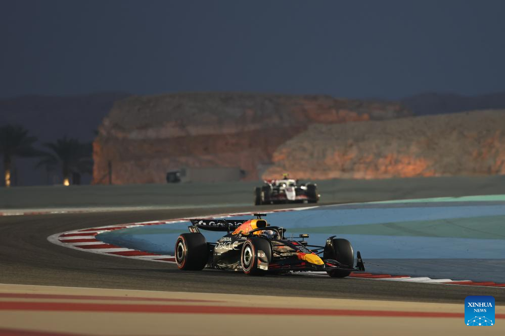 SAKHIR, 12 abril, 2025 (Xinhua) -- Imagen del 11 de abril de 2025 del piloto neerlandés de la escudería Red Bull, Max Verstappen (frente), conduciendo durante la segunda sesión de prácticas libres del Gran Premio de Bahréin de Fórmula Uno en el Circuito Internacional de Bahréin, en Sakhir, Bahréin. (Xinhua/Qian Jun)
