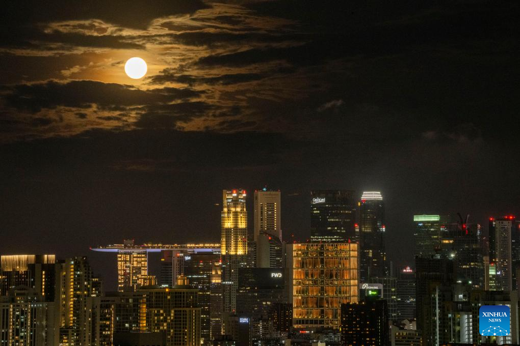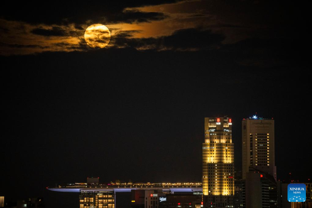 SINGAPUR, 13 abril, 2025 (Xinhua) -- Una Luna llena es vista, en Singapur, el 13 de abril de 2025. (Xinhua/Then Chih Wey)