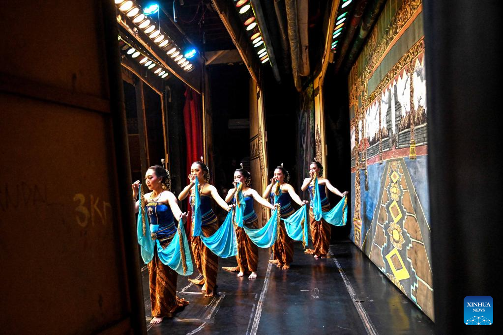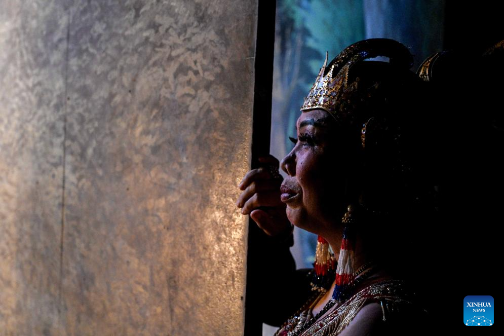 YAKARTA, 13 abril, 2025 (Xinhua) -- Imagen del 20 de diciembre de 2024 de una bailarina preparándose para realizar una presentación de Wayang Orang en el Teatro Wayang Orang Sriwedari, en Surakarta, en la provincia de Java Central, Indonesia. El Wayang, una forma teatral única considerada la joya de la corona cultural de Indonesia, consiste principalmente en marionetas de sombras (Wayang Kulit en indonesio), marionetas de madera (Wayang Golek en indonesio) y marionetas humanas (Wayang Orang en indonesio). (Xinhua/Agung Kuncahya B.)