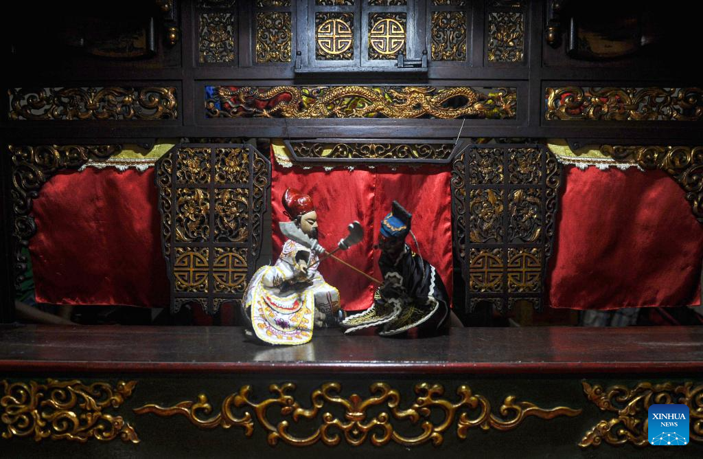 YAKARTA, 13 abril, 2025 (Xinhua) -- Imagen del 10 de enero de 2025 de personas practicando con marionetas de guante conocidas como Wayang Potehi en Surabaya, en la provincia de Java Oriental, Indonesia. El Wayang, una forma teatral única considerada la joya de la corona cultural de Indonesia, consiste principalmente en marionetas de sombras (Wayang Kulit en indonesio), marionetas de madera (Wayang Golek en indonesio) y marionetas humanas (Wayang Orang en indonesio). (Xinhua/Sahlan Kurniawan)