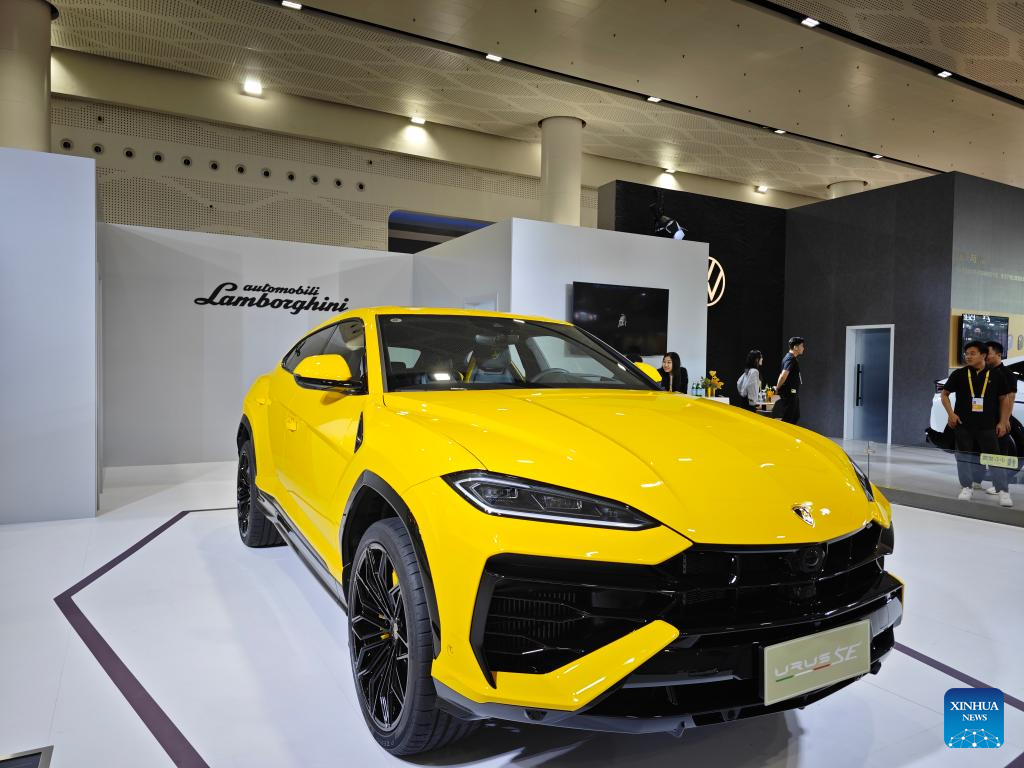 HAIKOU, 16 abril, 2025 (Xinhua) -- Imagen del 15 de abril de 2025 de un automóvil Lamborghini visto en la V Exposición Internacional de Productos de Consumo de China (CICPE, por sus siglas en inglés), en Haikou, en la provincia de Hainan, en el sur de China. En el área de exhibición de estilo de vida de moda de la exposición de consumo en curso, seis marcas de Volkswagen Group de China, incluidas Volkswagen, Audi, Porsche y Bentley, mostraron los últimos avances en lujo y movilidad eléctrica. (Xinhua/Zhou Huimin)