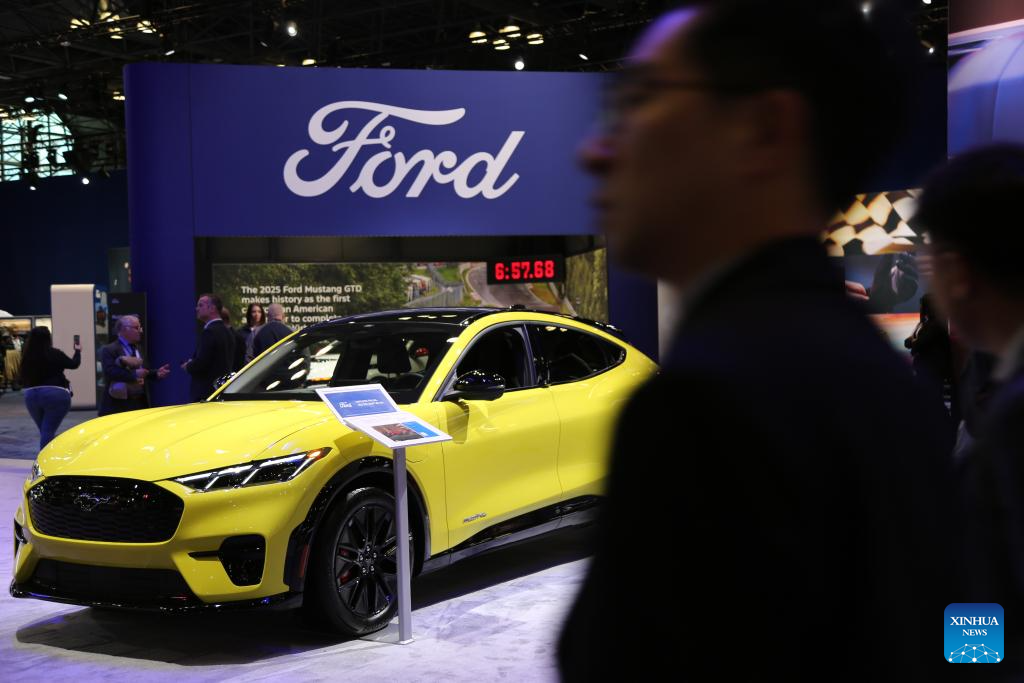 NUEVA YORK, 16 abril, 2025 (Xinhua) -- Personas visitan el área de exhibición de Ford Motor Company durante el Salón Internacional del Automóvil de Nueva York 2025, en el Javits Center, en Nueva York, Estados Unidos, el 16 de abril de 2025. El Salón Internacional del Automóvil de Nueva York 2025 comenzó aquí el miércoles con días de exposición al público del 18 al 27 de abril. (Xinhua/Liu Yanan)