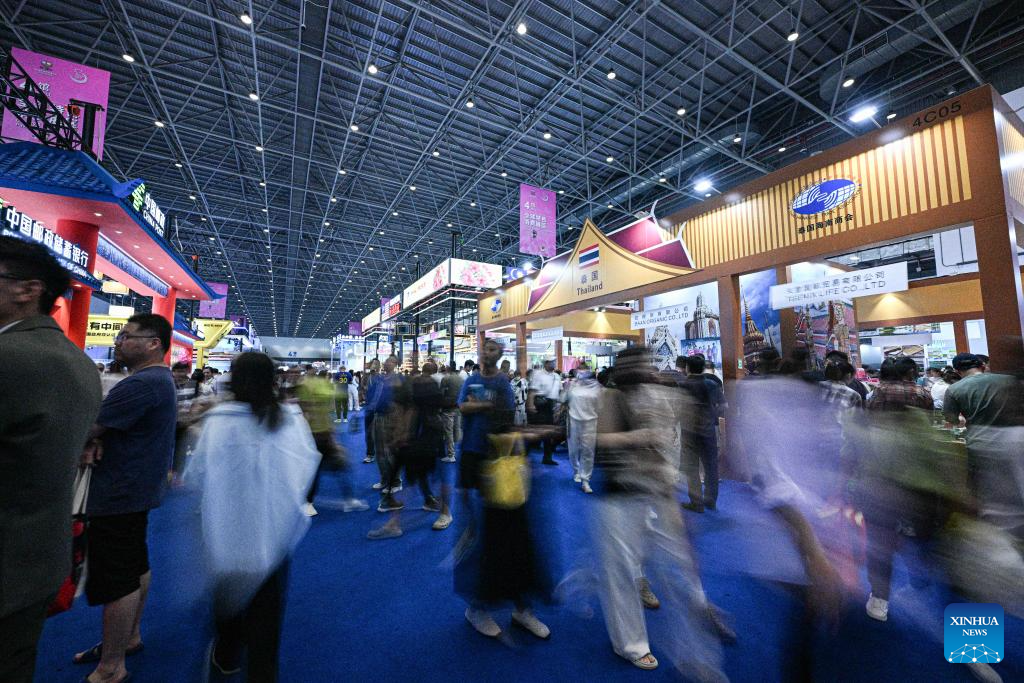 HAIKOU, 17 abril, 2025 (Xinhua) -- Personas visitan la V Exposición Internacional de Productos de Consumo de China (CICPE, por sus siglas en inglés), en Haikou, en la provincia de Hainan, en el sur de China, el 17 de abril de 2025. La V CICPE abrió sus puertas al público en general el jueves, mostrando bienes y servicios de sectores como tecnología, cuidado de la salud, cultura, turismo y deportes. (Xinhua/Pu Xiaoxu)