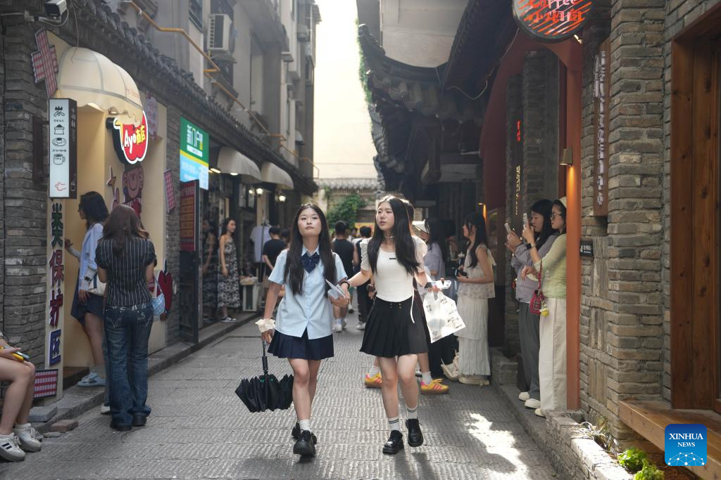 CHANGSHA, 4 mayo, 2025 (Xinhua) -- Imagen del 2 de mayo de 2025 de personas visitando un callejón, en Changsha, en la provincia de Hunan, en el centro de China. Las personas a través de China disfrutan del feriado del Primero de Mayo en curso en diferentes maneras. (Xinhua/Xue Yuge)