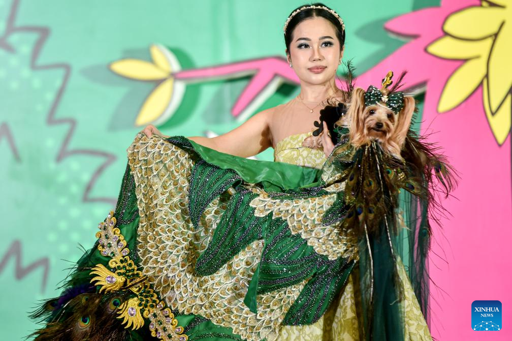 TANGERANG, 4 mayo, 2025 (Xinhua) -- Una mujer y su perro participan en un desfile de moda para perros y gatos durante el Pet Fest 2025, en Tangerang, Banten, Indonesia, el 4 de mayo de 2025. El evento se celebra aquí del 2 al 4 de mayo, con diversas actividades que incluyen sesiones comunitarias para amantes de las mascotas y exhibiciones de productos para mascotas. (Xinhua/Agung Kuncahya B.)