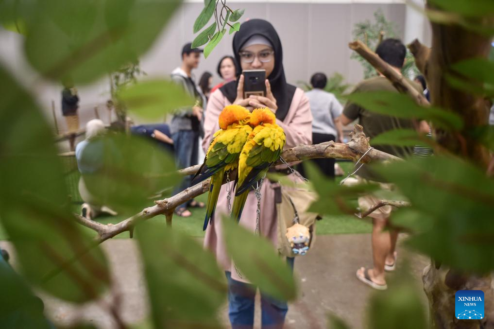 TANGERANG, 4 mayo, 2025 (Xinhua) -- Una mujer toma fotografías de loros dormidos durante el Pet Fest 2025, en Tangerang, Banten, Indonesia, el 4 de mayo de 2025. El evento se celebra aquí del 2 al 4 de mayo, con diversas actividades que incluyen sesiones comunitarias para amantes de las mascotas y exhibiciones de productos para mascotas. (Xinhua/Agung Kuncahya B.)