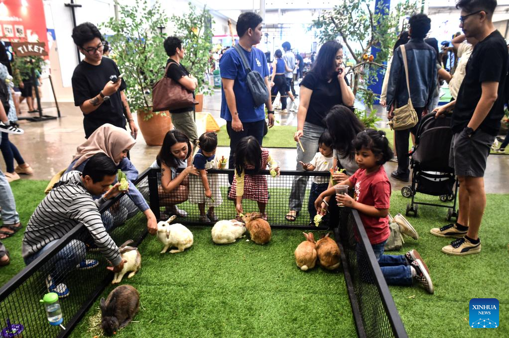TANGERANG, 4 mayo, 2025 (Xinhua) -- Personas alimentan conejos durante el Pet Fest 2025, en Tangerang, Banten, Indonesia, el 4 de mayo de 2025. El evento se celebra aquí del 2 al 4 de mayo, con diversas actividades que incluyen sesiones comunitarias para amantes de las mascotas y exhibiciones de productos para mascotas. (Xinhua/Agung Kuncahya B.)