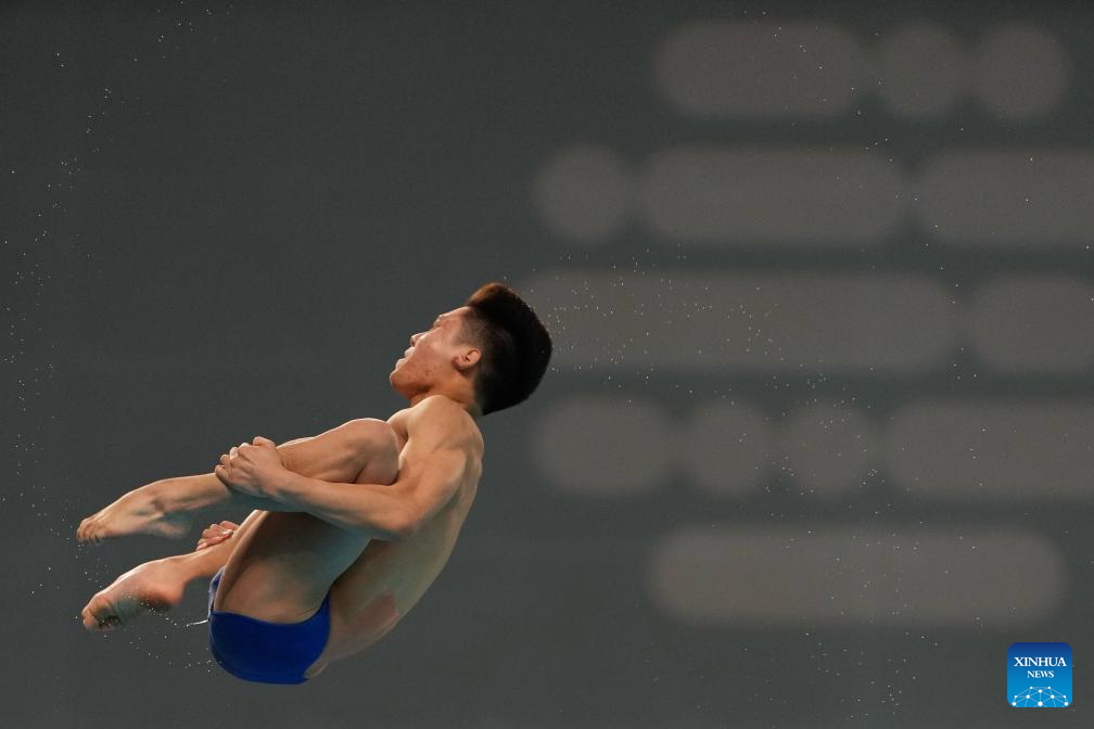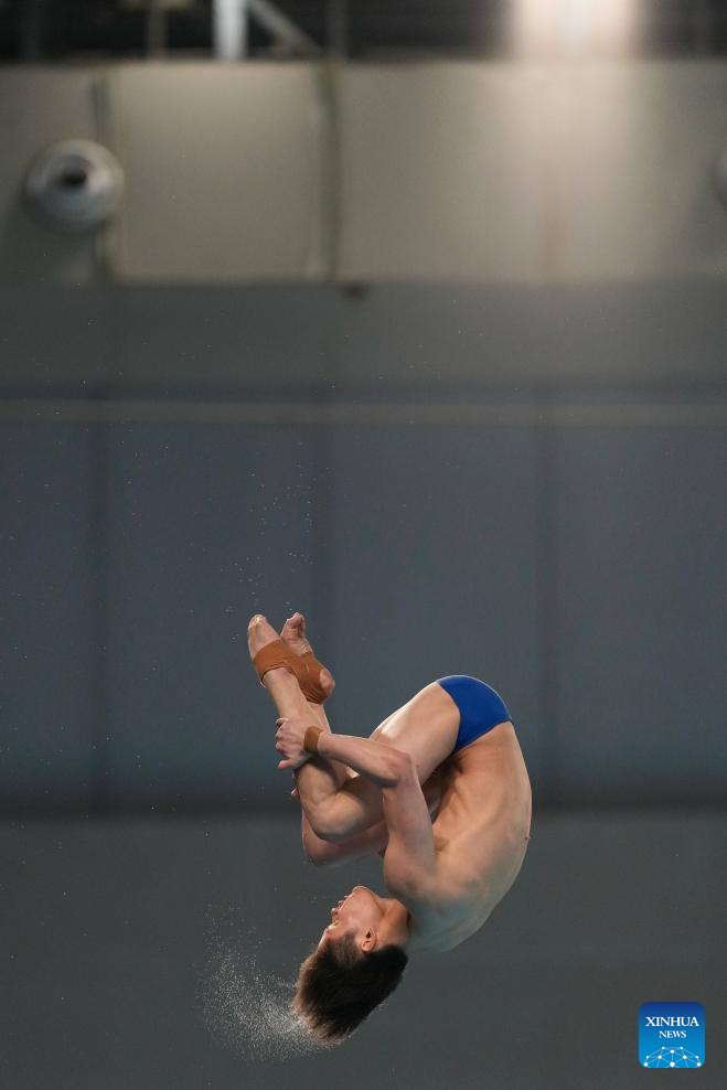 BEIJING, 4 mayo, 2025 (Xinhua) -- Cheng Zilong, de China, compite durante la final de plataforma de 10m masculina en la Súper Final de la Copa del Mundo de Clavados 2025 de World Aquatics, en Beijing, capital de China, el 4 de mayo de 2025. (Xinhua/Na Yuqi)