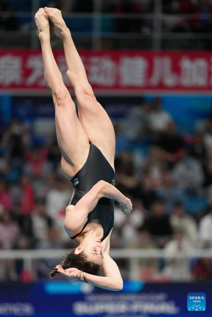 BEIJING, 4 mayo, 2025 (Xinhua) -- Maddison Keeney, de Australia, compite durante la final de trampolín de 3m femenino en la Súper Final de la Copa del Mundo de Clavados 2025 de World Aquatics, en Beijing, capital de China, el 4 de mayo de 2025. (Xinhua/Na Yuqi)