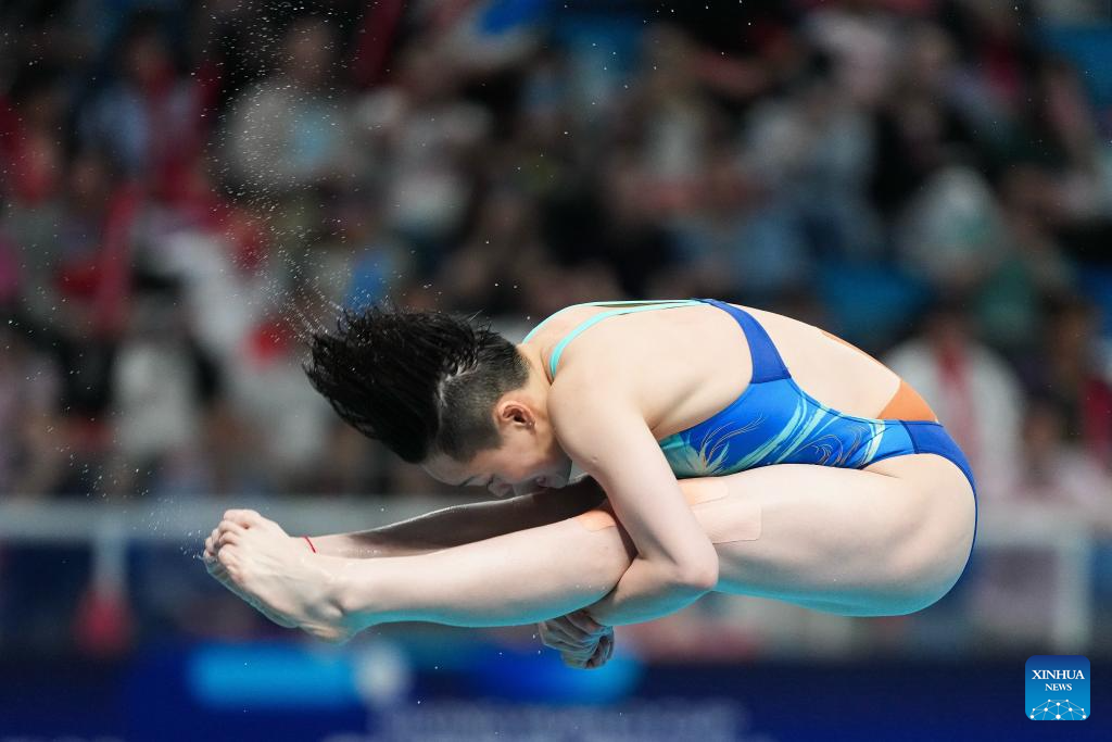 BEIJING, 4 mayo, 2025 (Xinhua) -- Chen Yiwen, de China, compite durante la final de trampolín de 3m femenino en la Súper Final de la Copa del Mundo de Clavados 2025 de World Aquatics, en Beijing, capital de China, el 4 de mayo de 2025. (Xinhua/Na Yuqi)