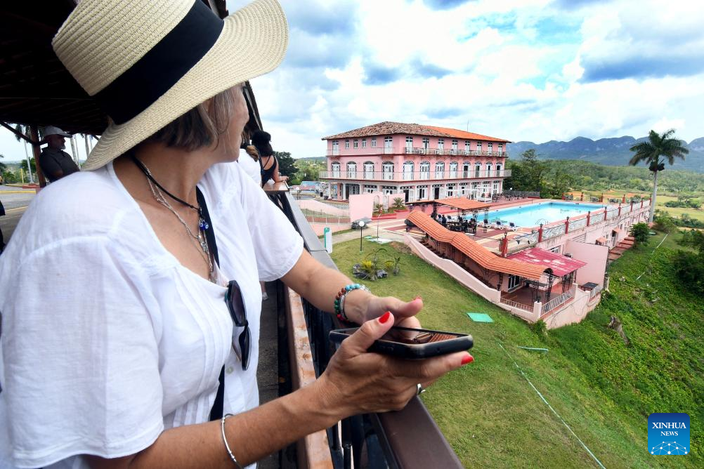 PINAR DEL RIO, 6 mayo, 2025 (Xinhua) -- Imagen del 5 de mayo de 2025 de una turista observando una instalación hotelera, en el valle de Viñales, en la provincia de Pinar del Río, Cuba. La exuberante naturaleza del extremo occidental de Cuba y de manera particular de la localidad de Viñales, constituye un atractivo que el Ministerio de Turismo de la isla trata de desarrollar con la vista puesta en el mercado chino. (Xinhua/Joaquín Hernández)