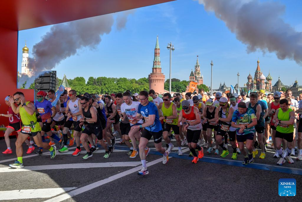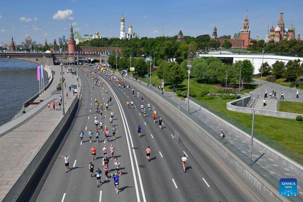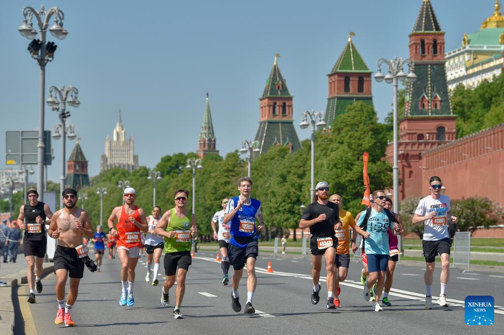 MOSCÚ, 25 mayo, 2025 (Xinhua) -- Imagen del 24 de mayo de 2025 de corredores compitiendo durante la media maratón de Toda Rusia, en Moscú, Rusia. (Xinhua/Alexander Zemlianichenko Jr)