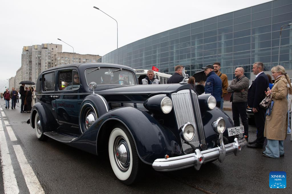 SAN PETERSBURGO, 25 mayo, 2025 (Xinhua) -- Imagen del 24 de mayo de 2025 de vehículos antiguos exhibidos, en San Petersburgo, Rusia. Una exposición de vehículos antiguos se llevó a cabo el sábado como parte de las celebraciones del próximo 322° aniversario de la fundación de Rusia el 27 de mayo. (Xinhua/Irina Motina)