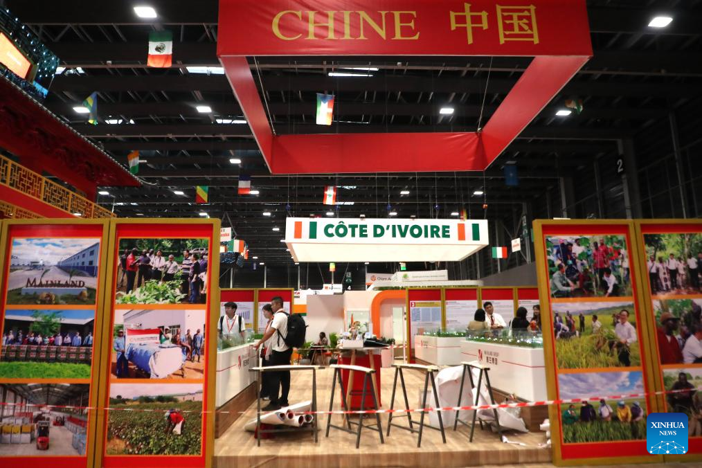 ABIYÁN, 25 mayo, 2025 (Xinhua) -- Imagen del 23 de mayo de 2025 de personas visitando el Pabellón de China durante la VII Exposición Internacional de Agricultura y Recursos Animales (SARA 2025) en el Centro de Exposiciones de Abiyán, en Abiyán, Cote d'Ivoire. La exposición, una importante feria agrícola en el oeste de Africa, abrió aquí el viernes, con China participando como invitado de honor. En un periodo de 10 días, se espera que la feria atraiga a más de 500.000 visitantes y cerca de 1.000 expositores presentando productos y servicios a lo largo de Africa, Asia y Europa. (Xinhua/Laurent Idibouo)