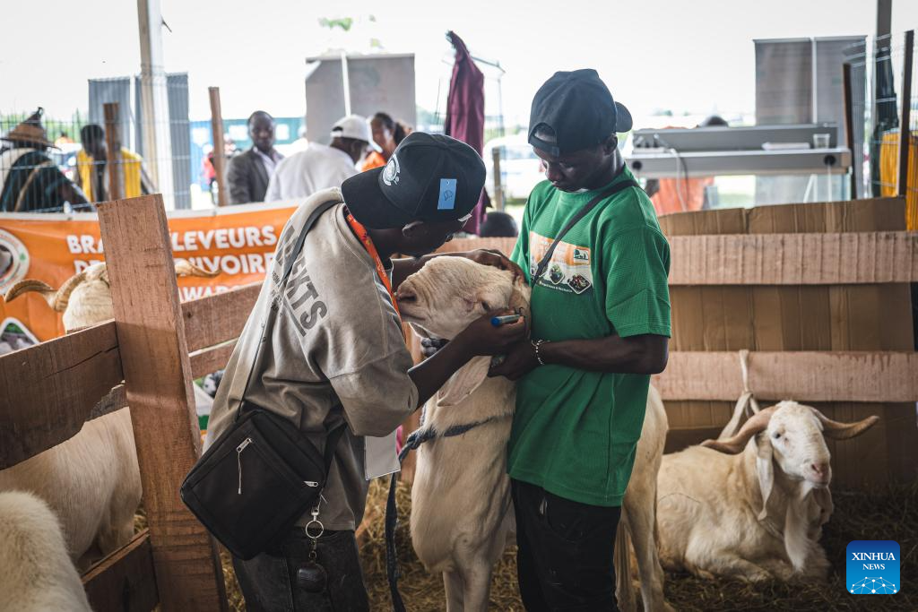ABIYÁN, 27 mayo, 2025 (Xinhua) -- Imagen del 26 de mayo de 2025 de expositores marcando una oveja durante la 7ª Feria Internacional de Agricultura y Recursos Animales, en Abiyán, Cote d'Ivoire. En un periodo de 10 días, se espera que la feria atraiga a más de 500.000 visitantes y cerca de 1.000 expositores presentando productos y servicios a lo largo de Africa, Asia y Europa. (Xinhua/Wang Guansen)