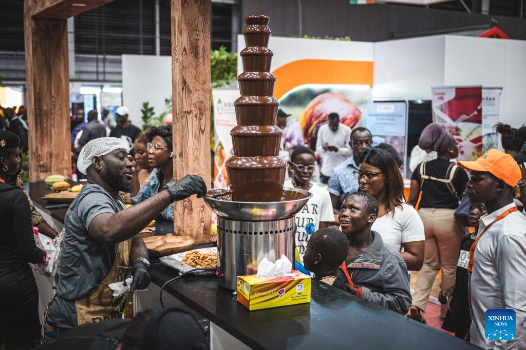 ABIYÁN, 27 mayo, 2025 (Xinhua) -- Imagen del 26 de mayo de 2025 de visitantes formándose para degustar chocolate hecho con cacao marfileño durante la 7ª Exposición Internacional de Agricultura y Recursos Animales, en Abiyán, Cote d'Ivoire. En un periodo de 10 días, se espera que la feria atraiga a más de 500.000 visitantes y cerca de 1.000 expositores presentando productos y servicios a lo largo de Africa, Asia y Europa. (Xinhua/Wang Guansen)