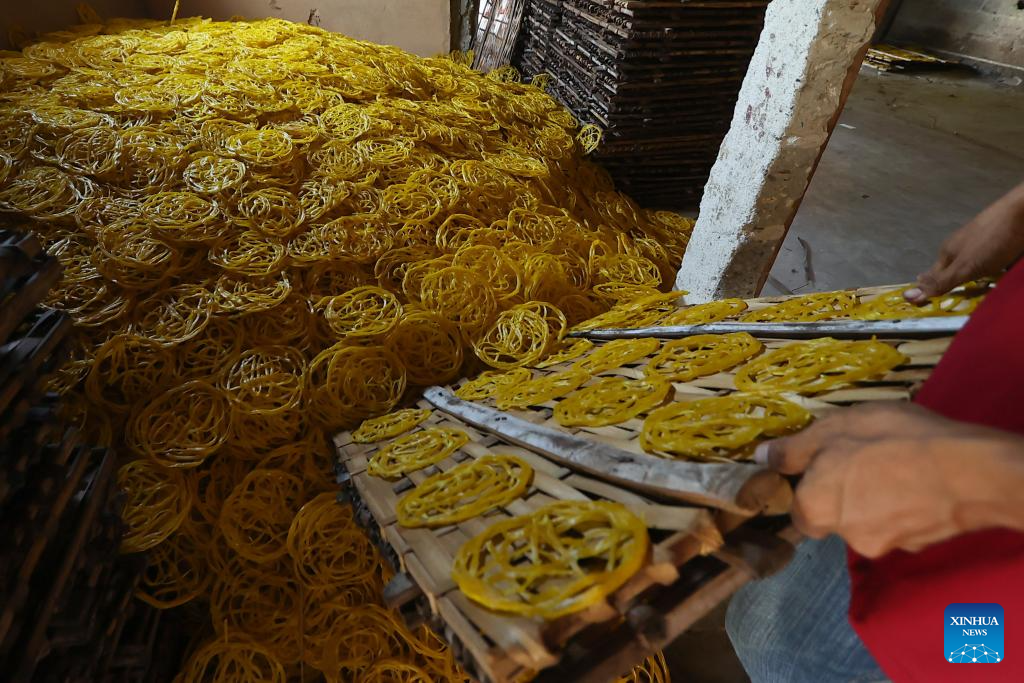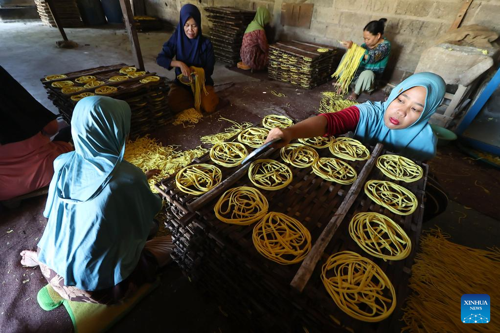 BOGOR, 28 mayo, 2025 (Xinhua) -- Trabajadoras preparan galletas amarillas tradicionales en un taller casero, en la aldea de Karadenan, en la regencia de Bogor, Java Occidental, Indonesia, el 28 de mayo de 2025. (Xinhua/Yorri Farli)